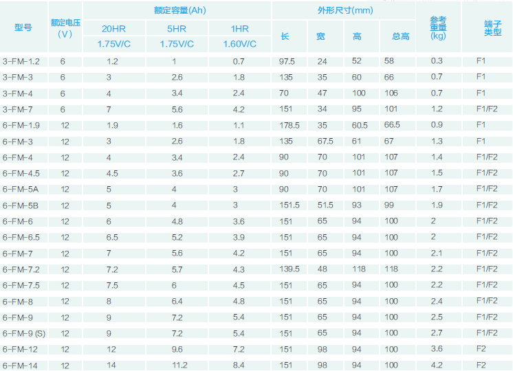 在20℃環(huán)境下,F(xiàn)M系列小型密封電池浮充壽命可達(dá)3~5年,F(xiàn)M固定型密封電池浮充壽命可達(dá)8~10年,F(xiàn)ML系列電池浮充壽命可達(dá)10年,F(xiàn)MH系列電池浮充壽命可達(dá)10年,GFM系列、太陽(yáng)能深循環(huán)系列電池浮充壽命可達(dá)15年,GFMJ系列電池浮充壽命可達(dá)18年。
